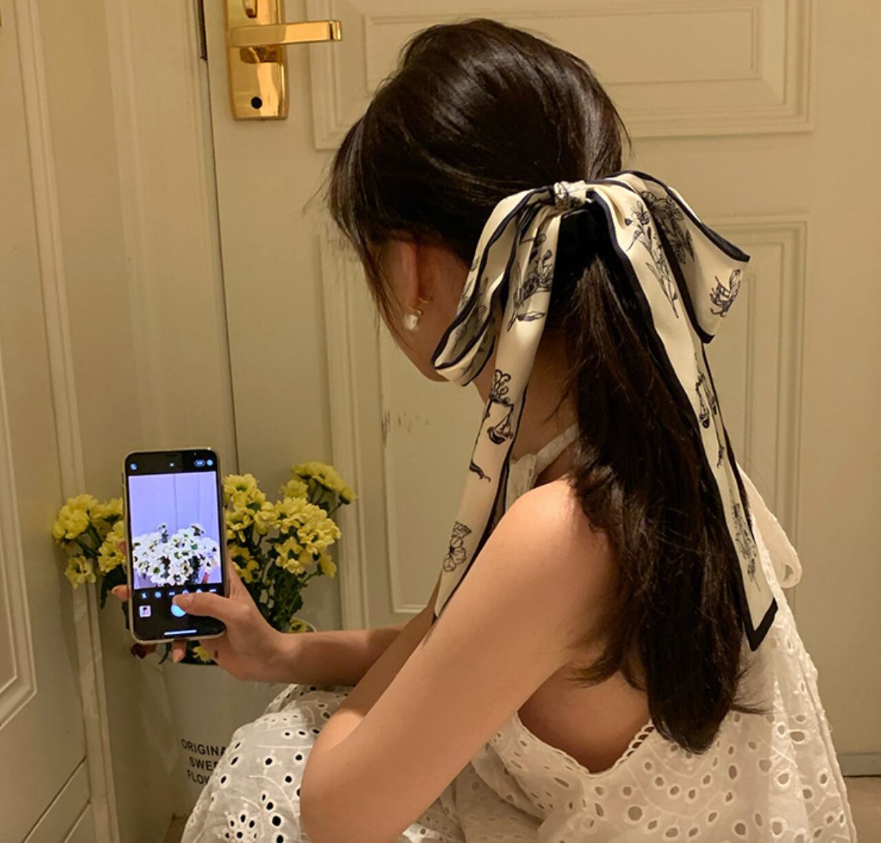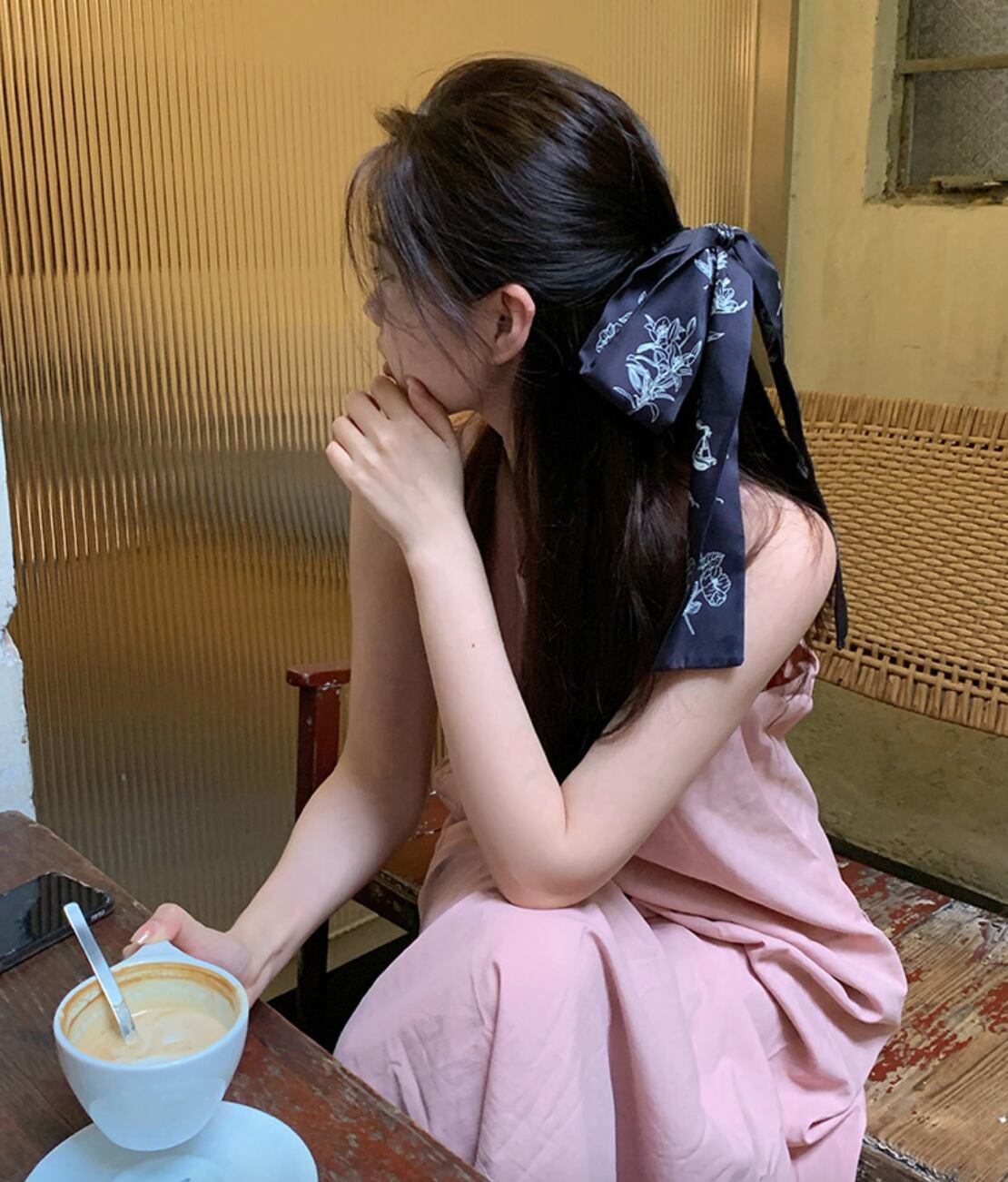 全2色|フレンチレトロ 花柄リボンヘアゴム|オリエンタルデザインの女性用ヘアアクセ