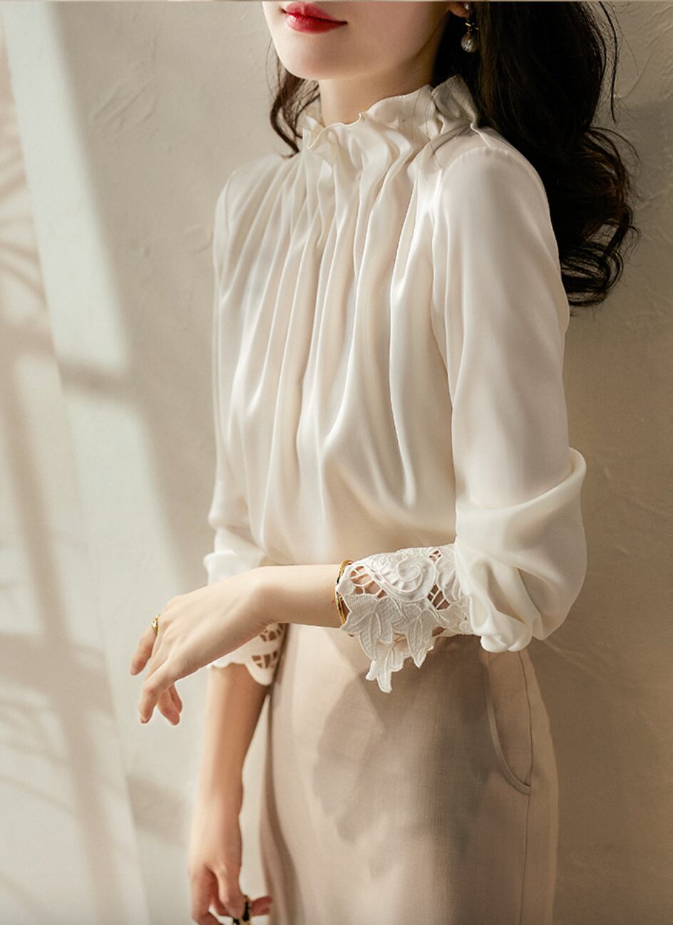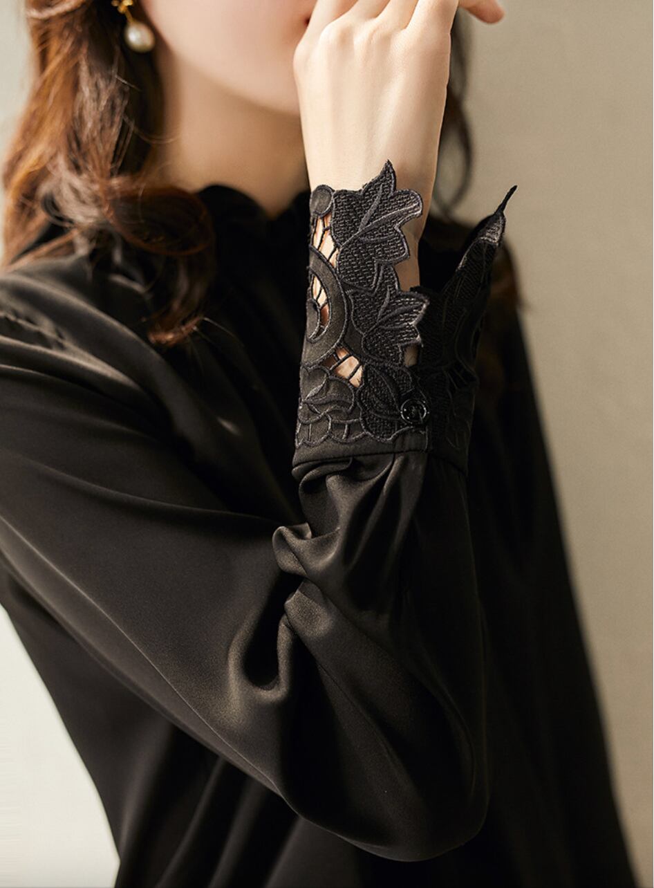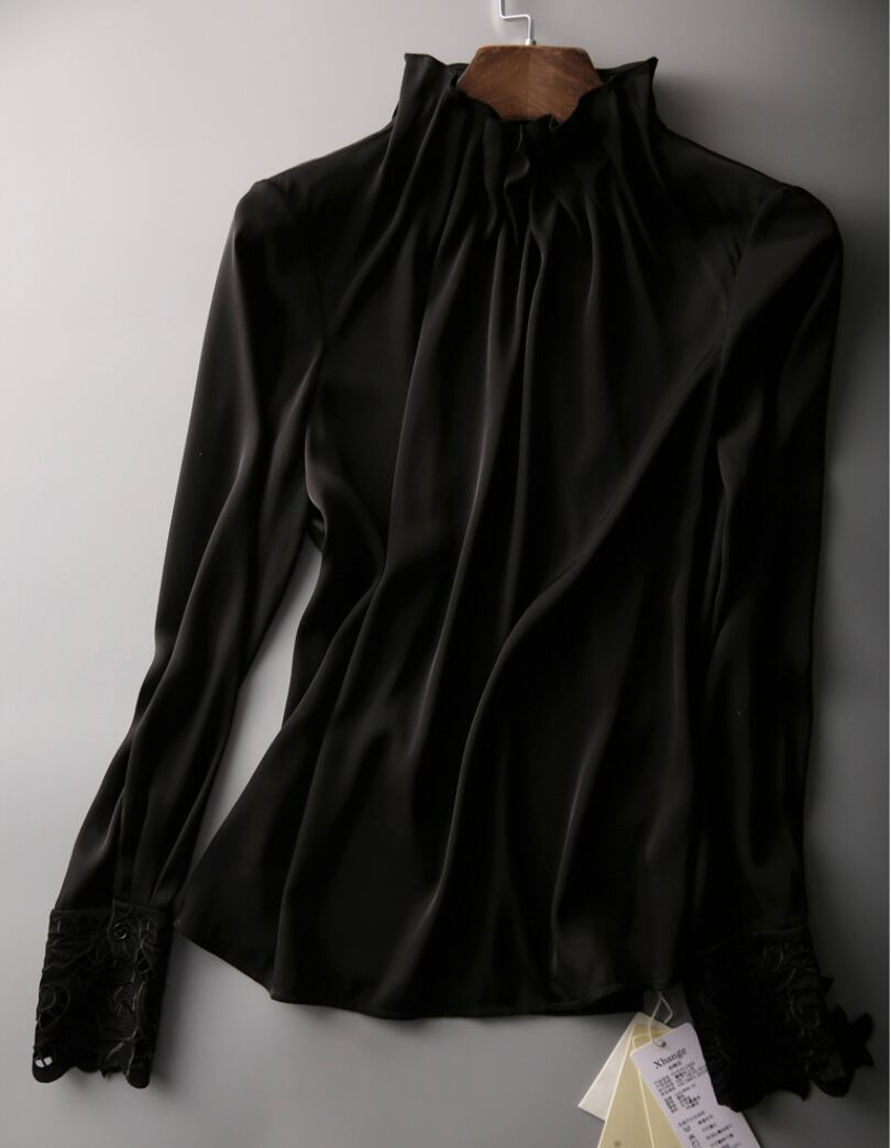 全2色|長袖 立ち襟 トップス レディース|無地 スリムフィット通勤きれいめ トップス
