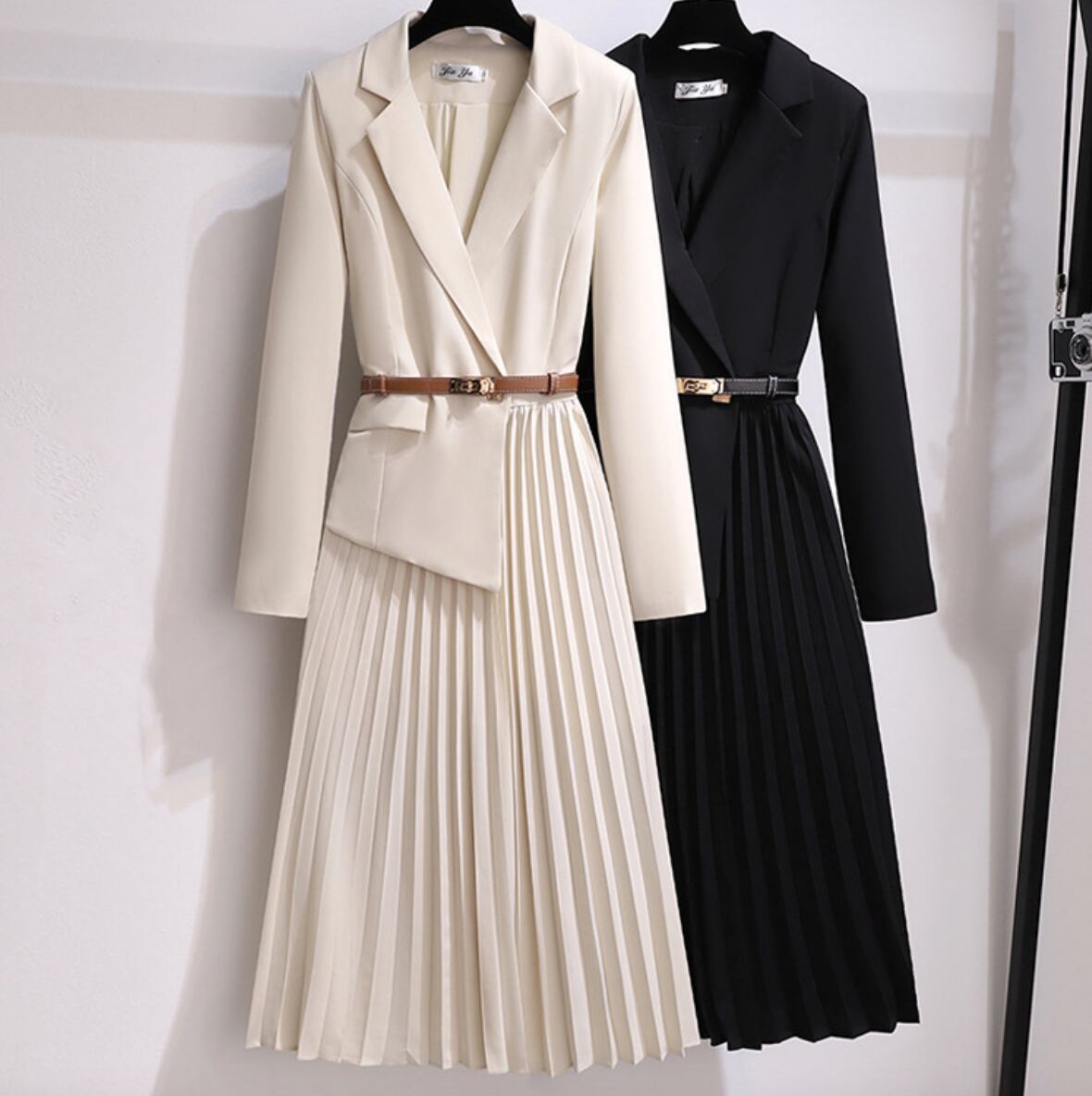 全2色|Aライン ミディ丈 ワンピース| テーラード風長袖 通勤きれいめ 春ワンピース
