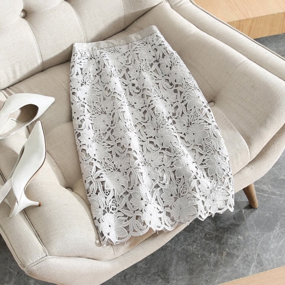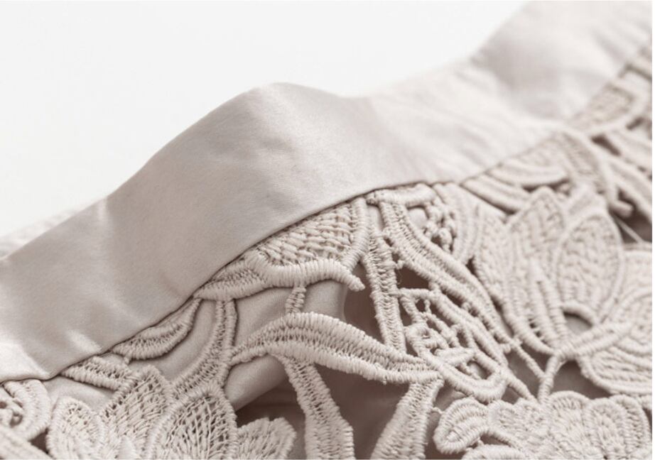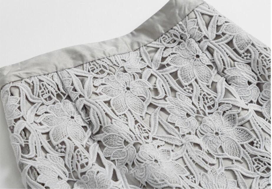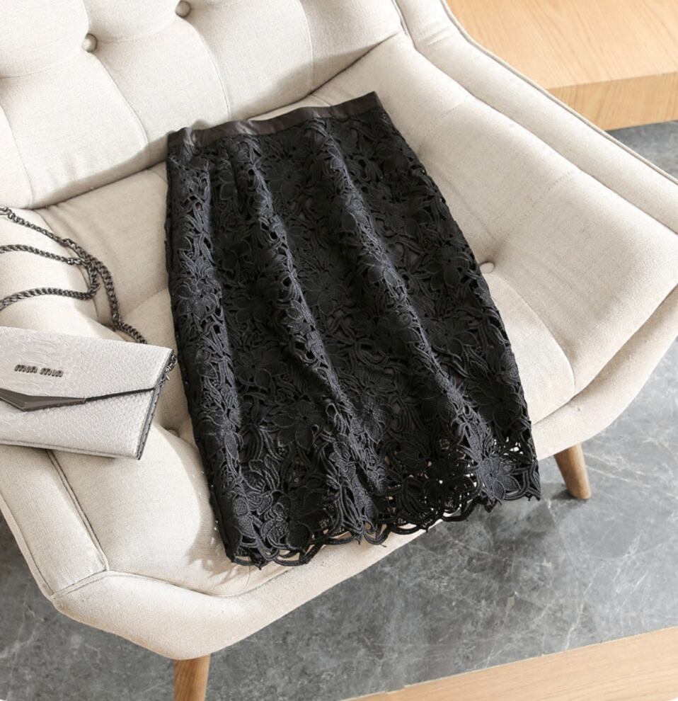 刺繍デザインが上品な印象のAラインスカート。