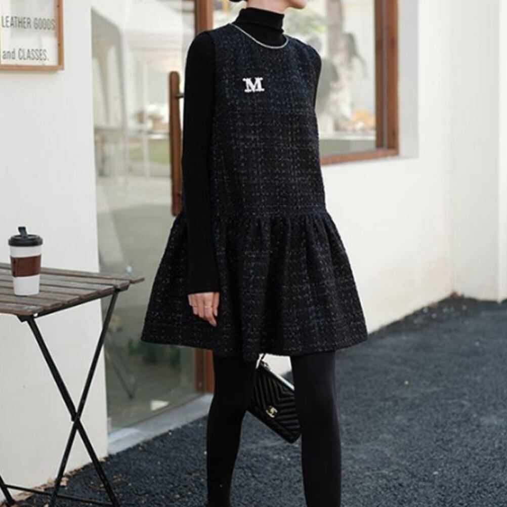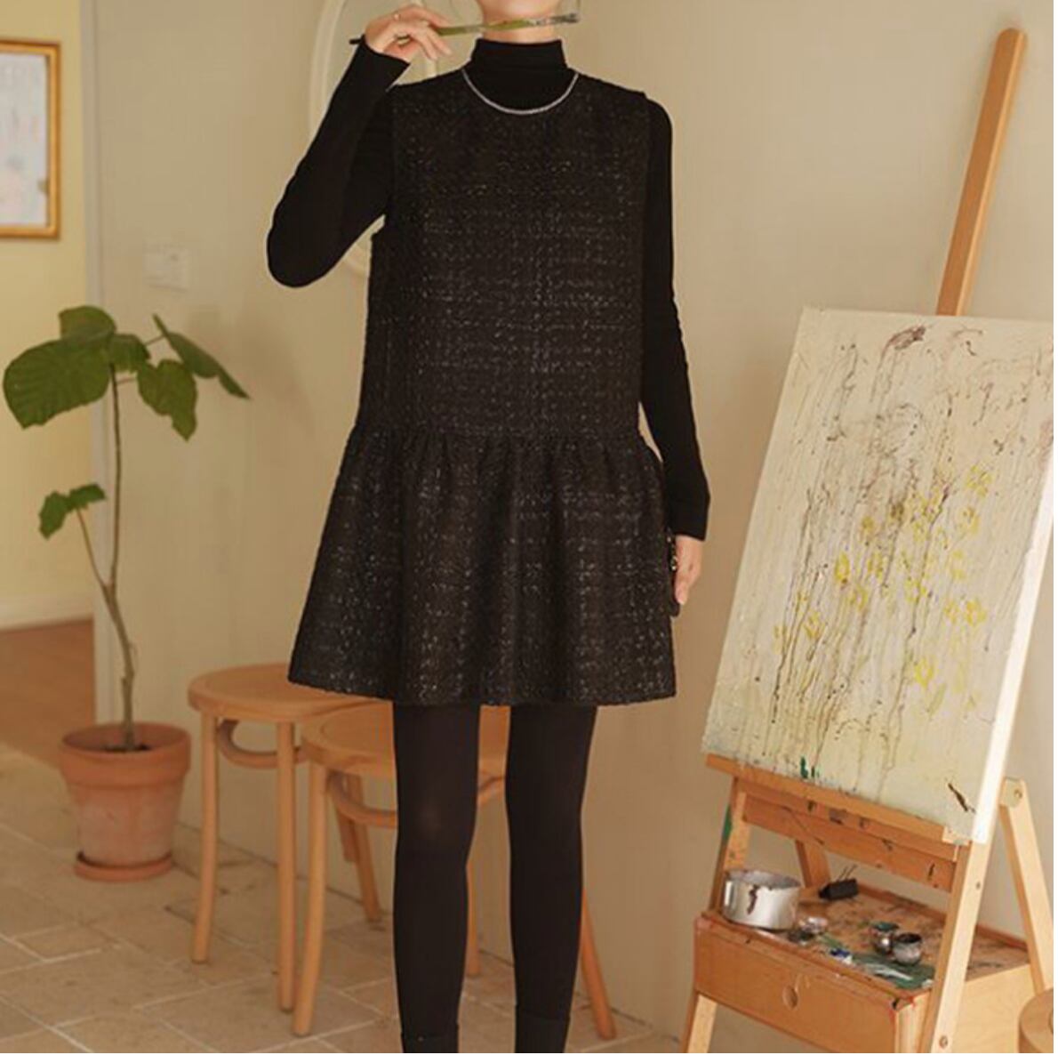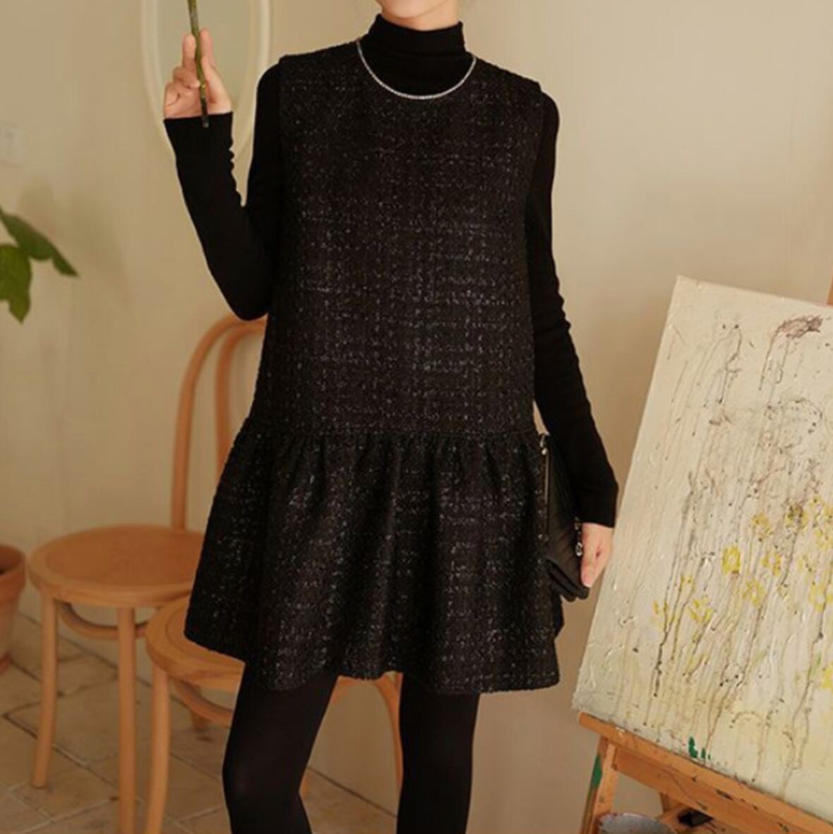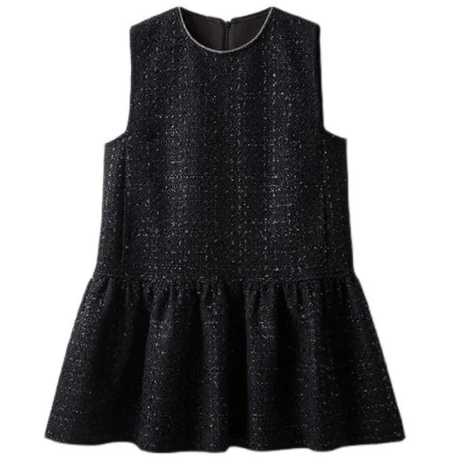 フリルデザイン ノースリーブAラインワンピース|ハイウエスト ミニ丈 上品きれいめ ブラック