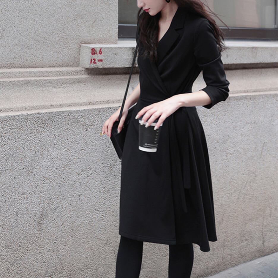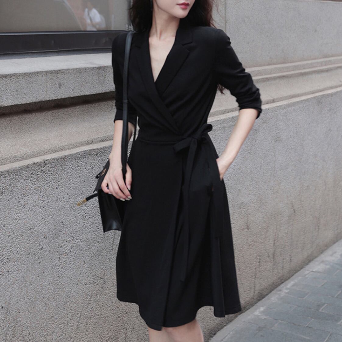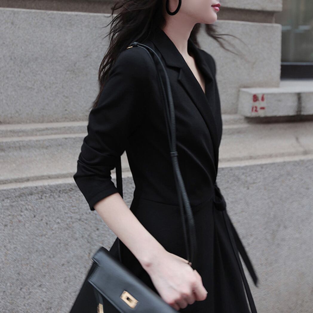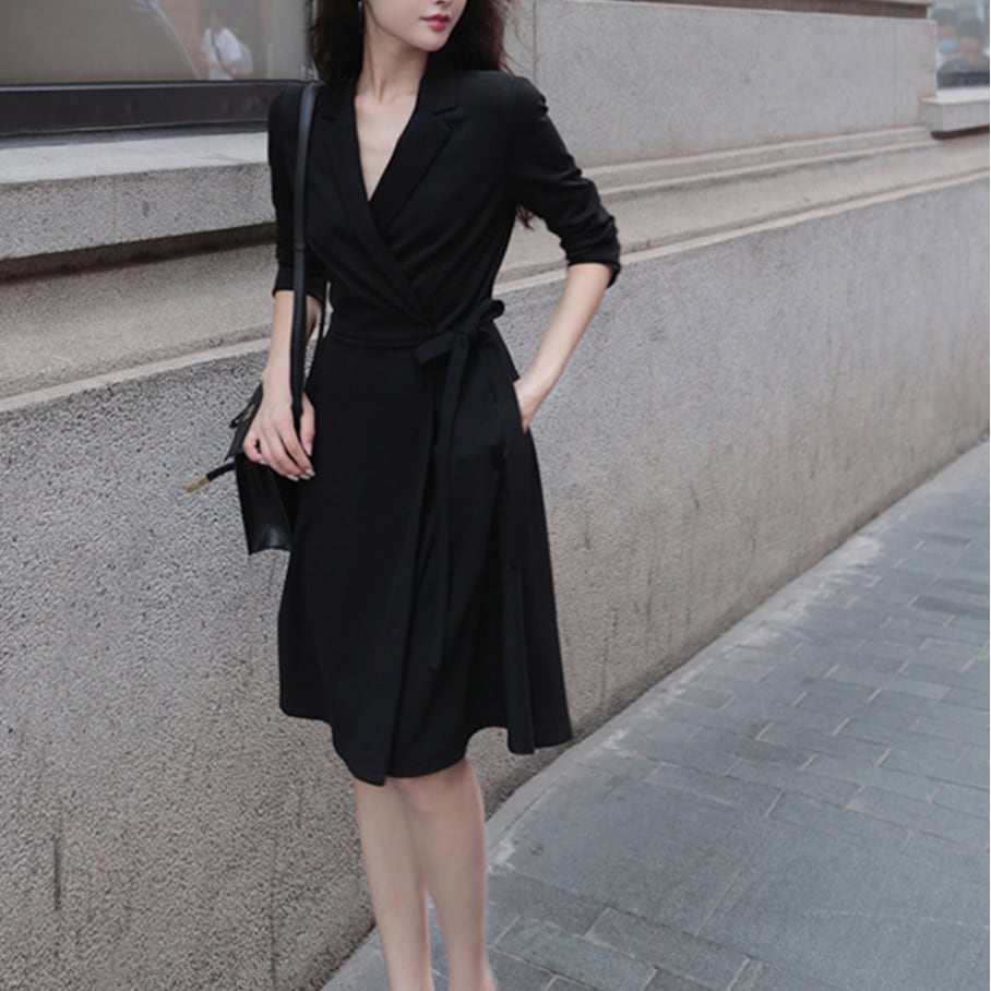 ウエストリボン付き テーラード風ミディワンピース|通勤・オフィス