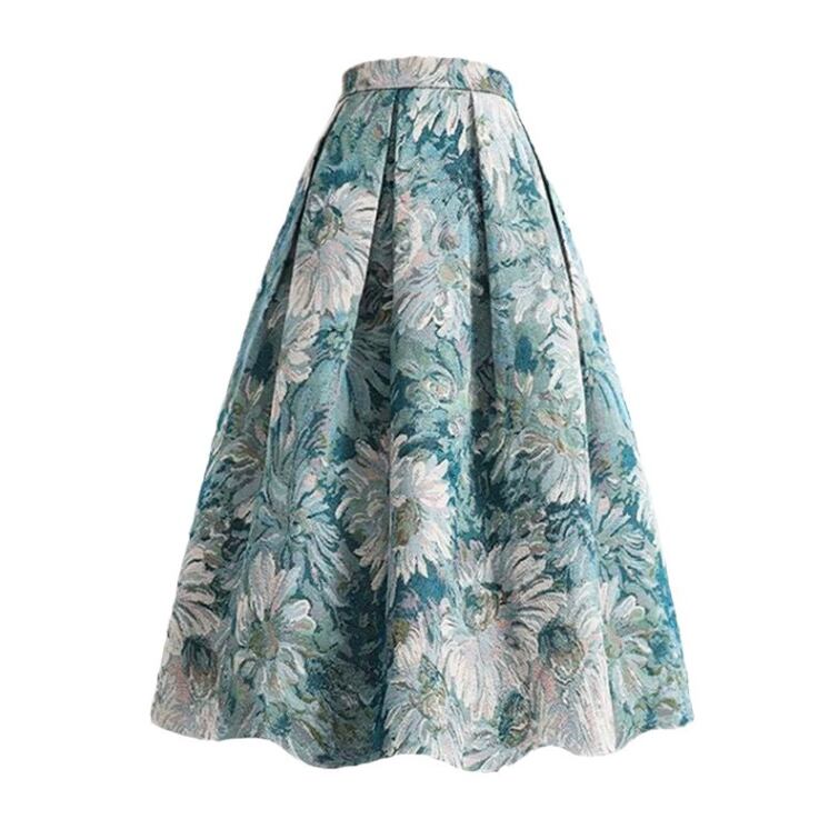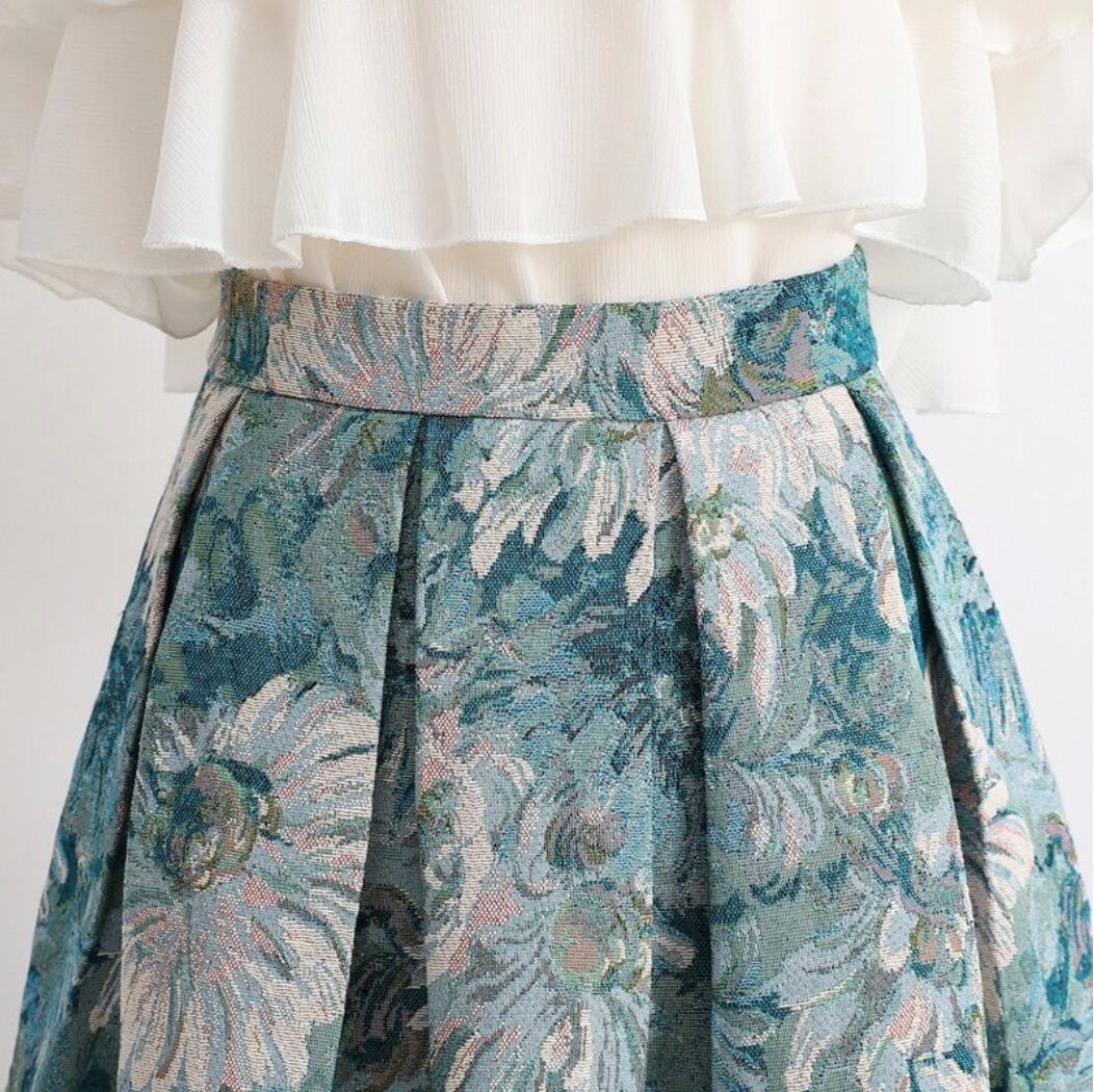 フラワージャガードミドル丈フレアスカート|エレガント きれいめ レディース