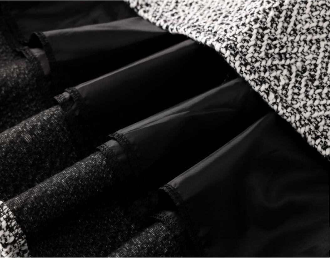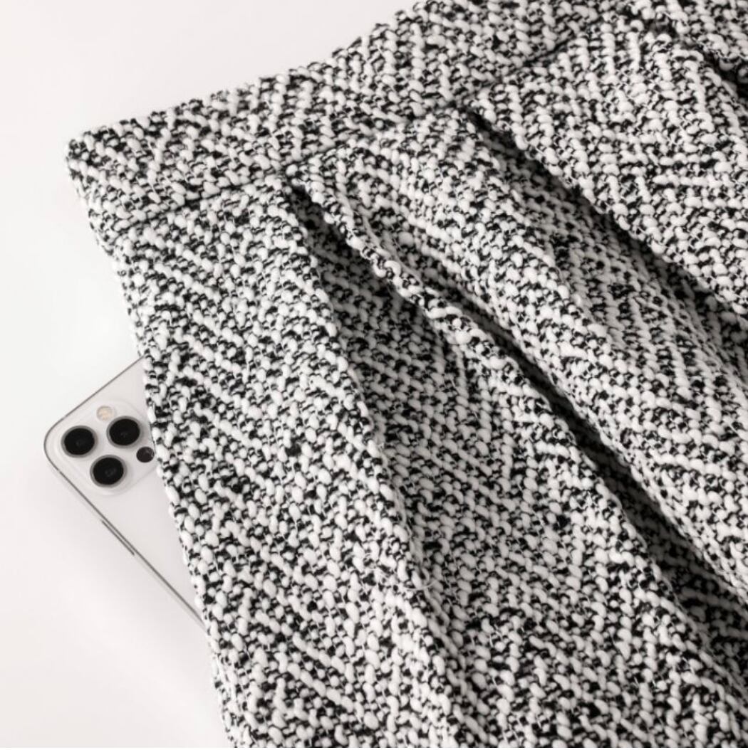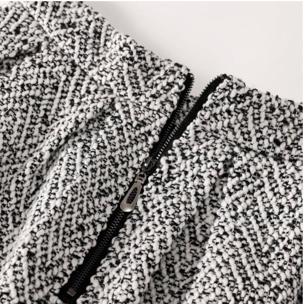 シンプルで着回しやすい、ツイード風素材のミドル丈フレアスカート。