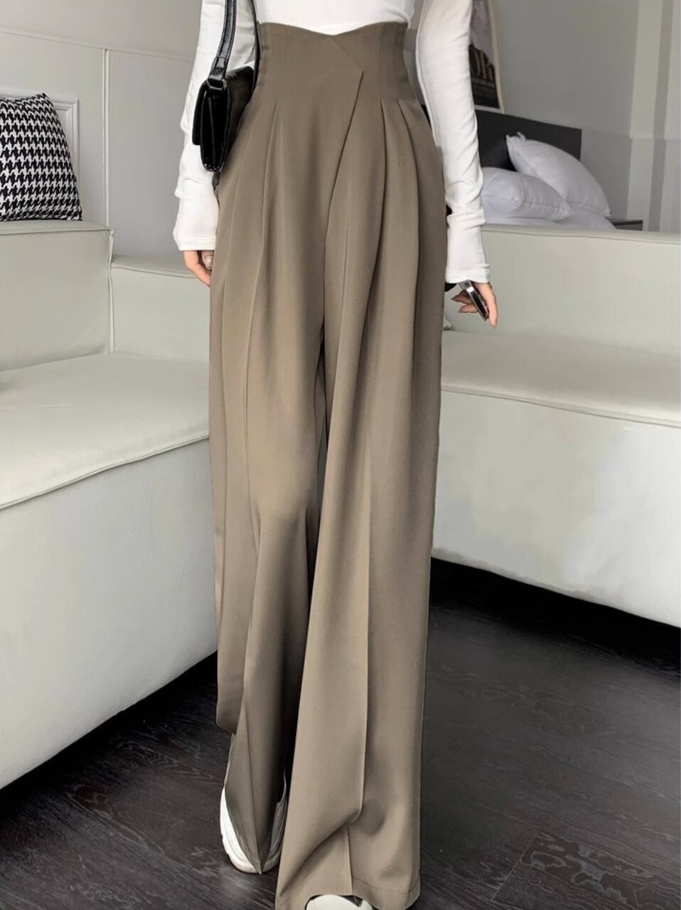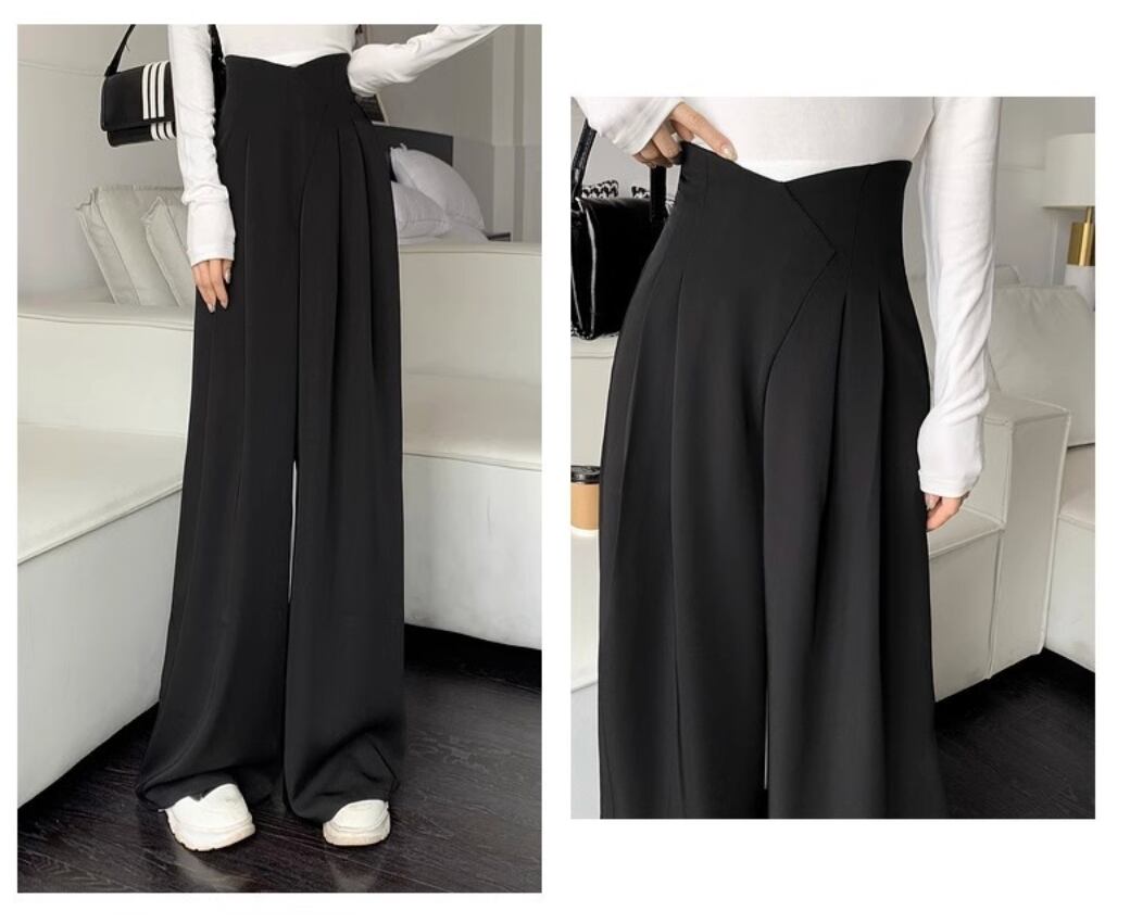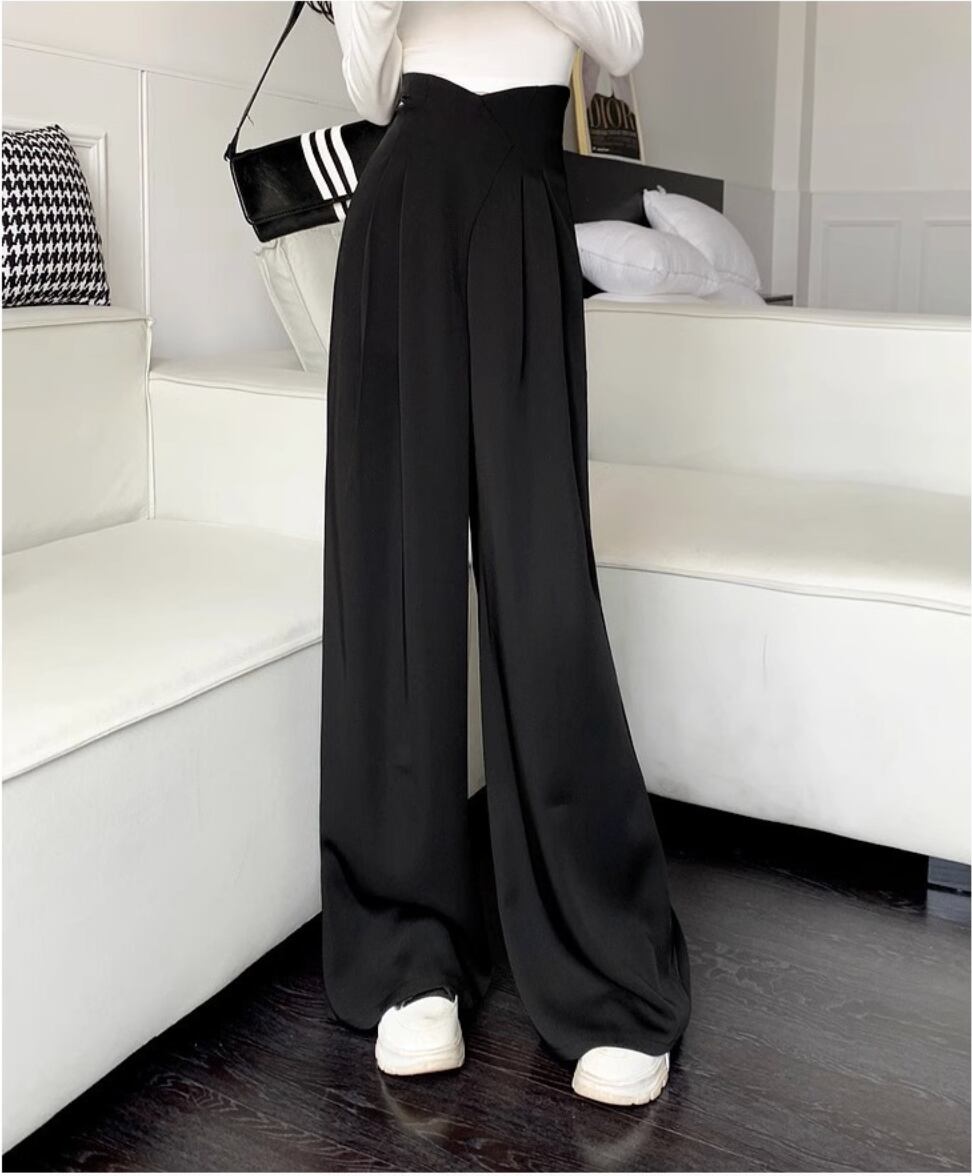 すとんと落ちるワイドシルエットが脚のラインを美しく見せ、