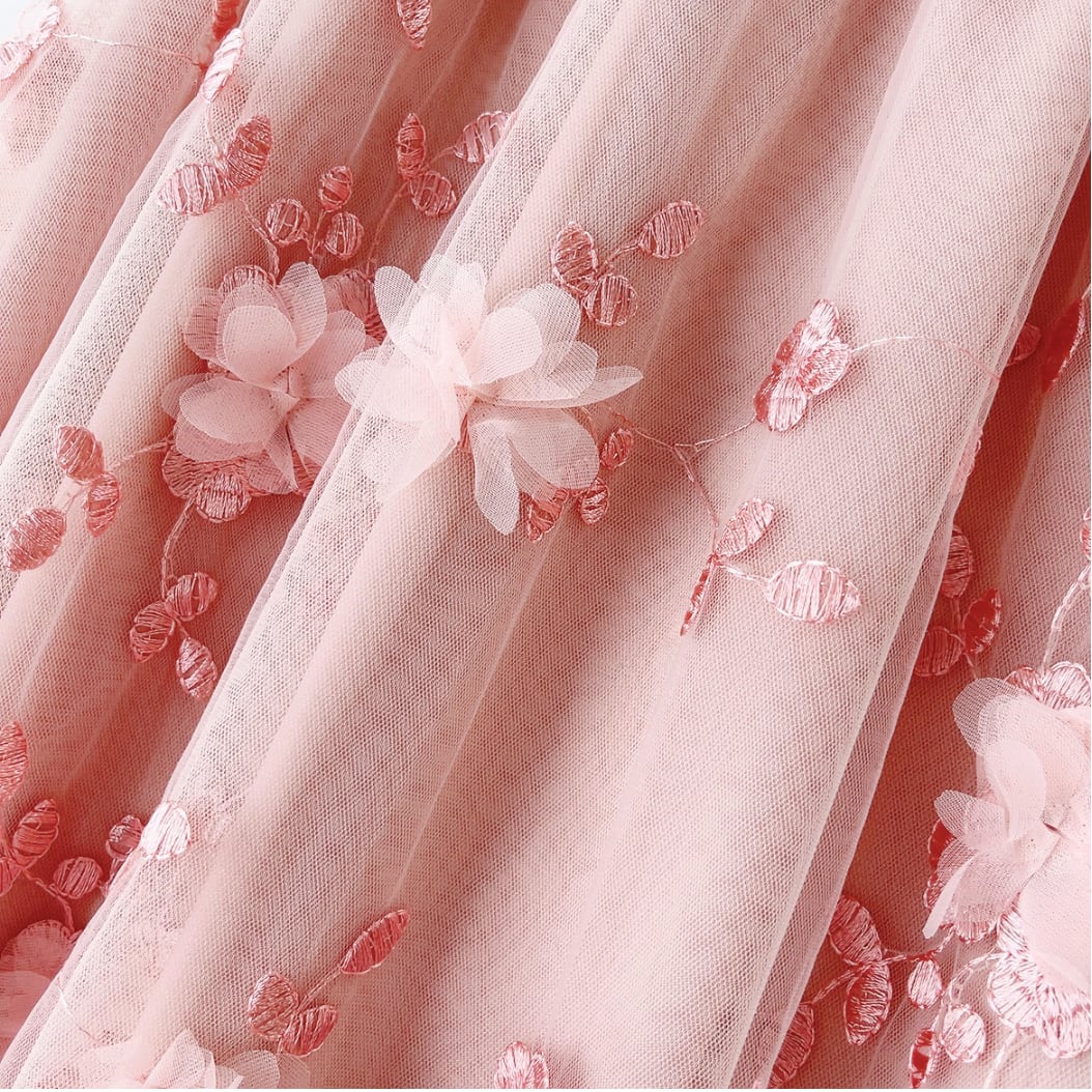 立体感のあるフラワー刺繍が目を惹く、上品でフェミニンなチュールスカート。