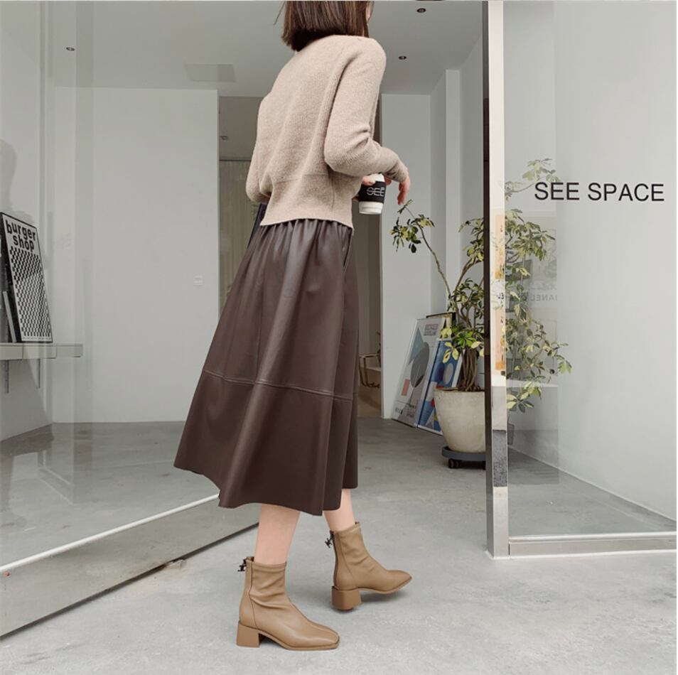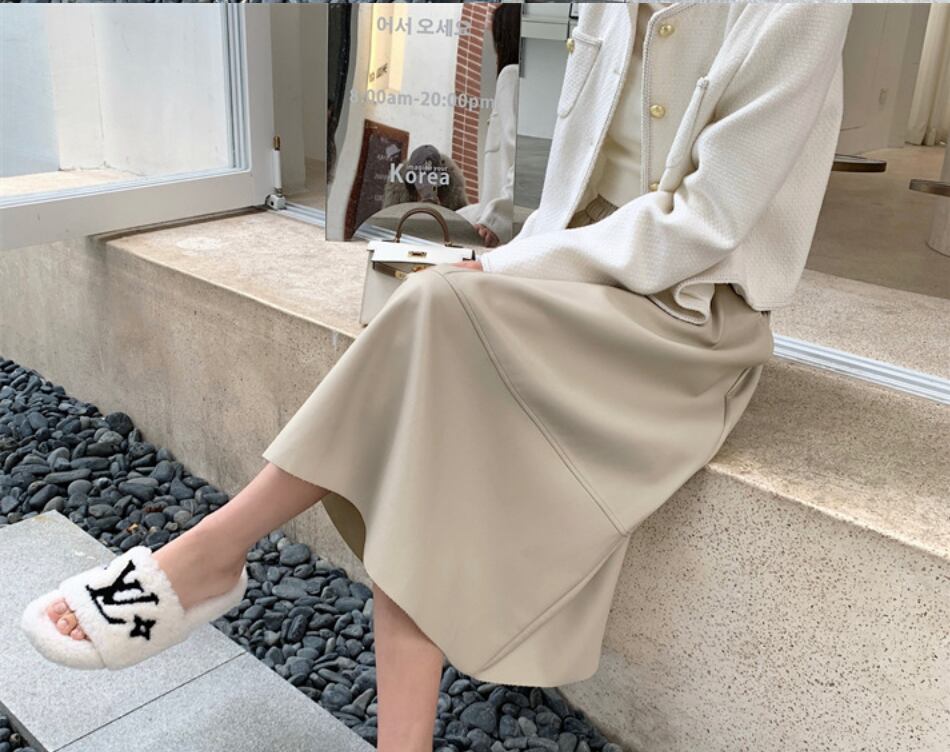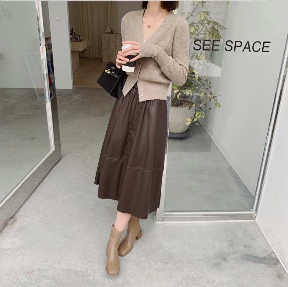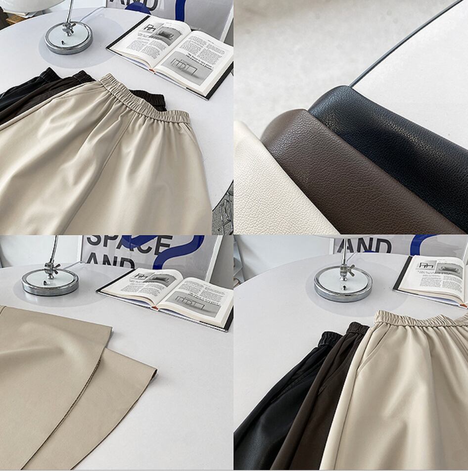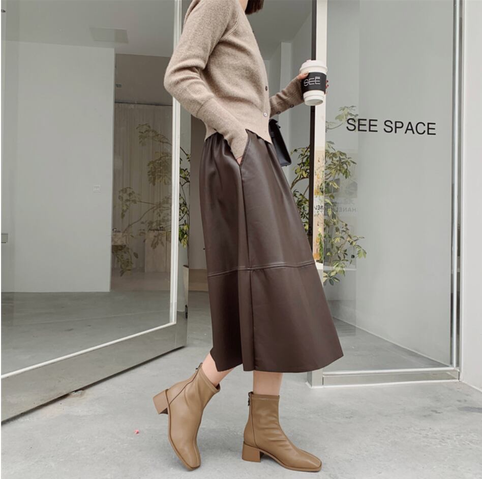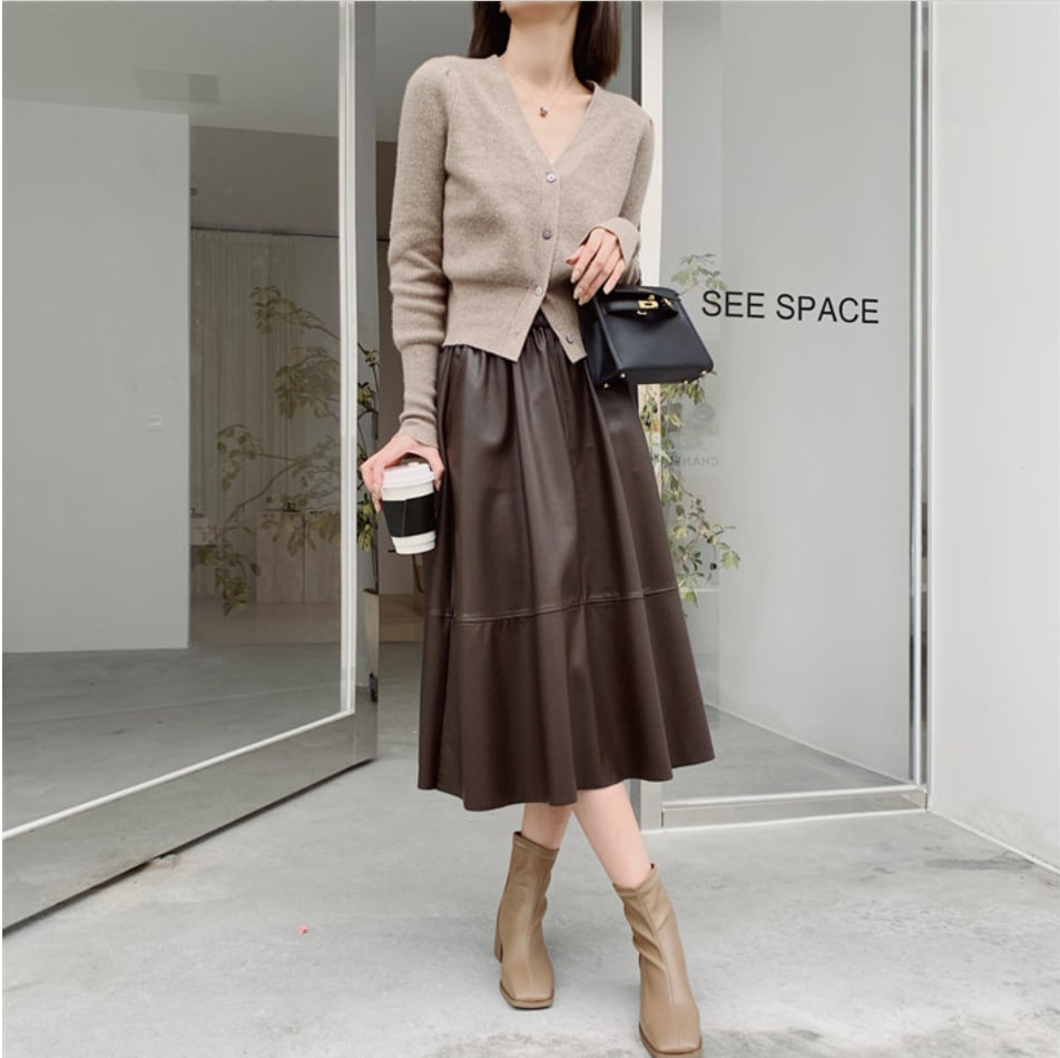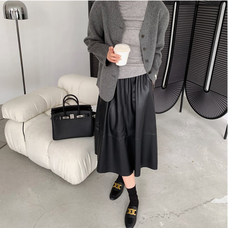 全3色|レザーAラインスカート|ミモレ丈・ポケット付き・きれいめ通勤