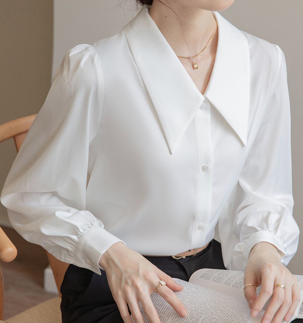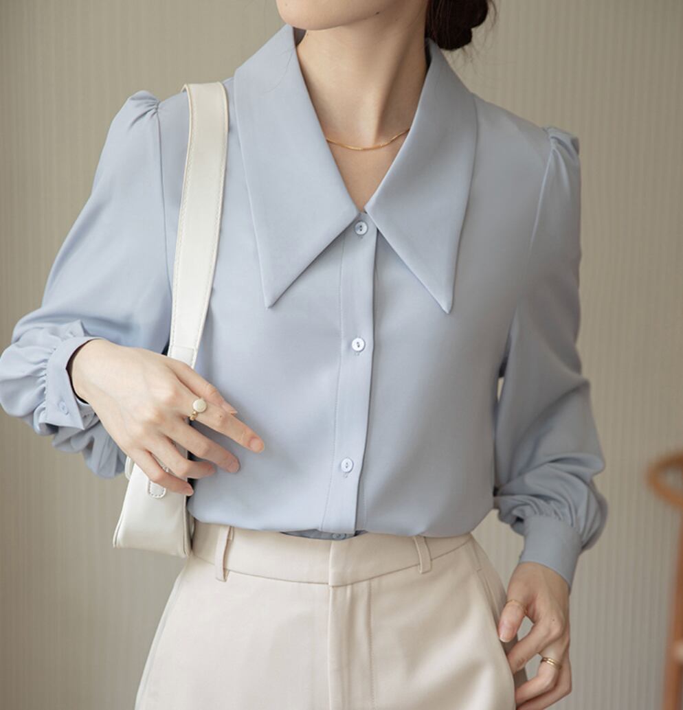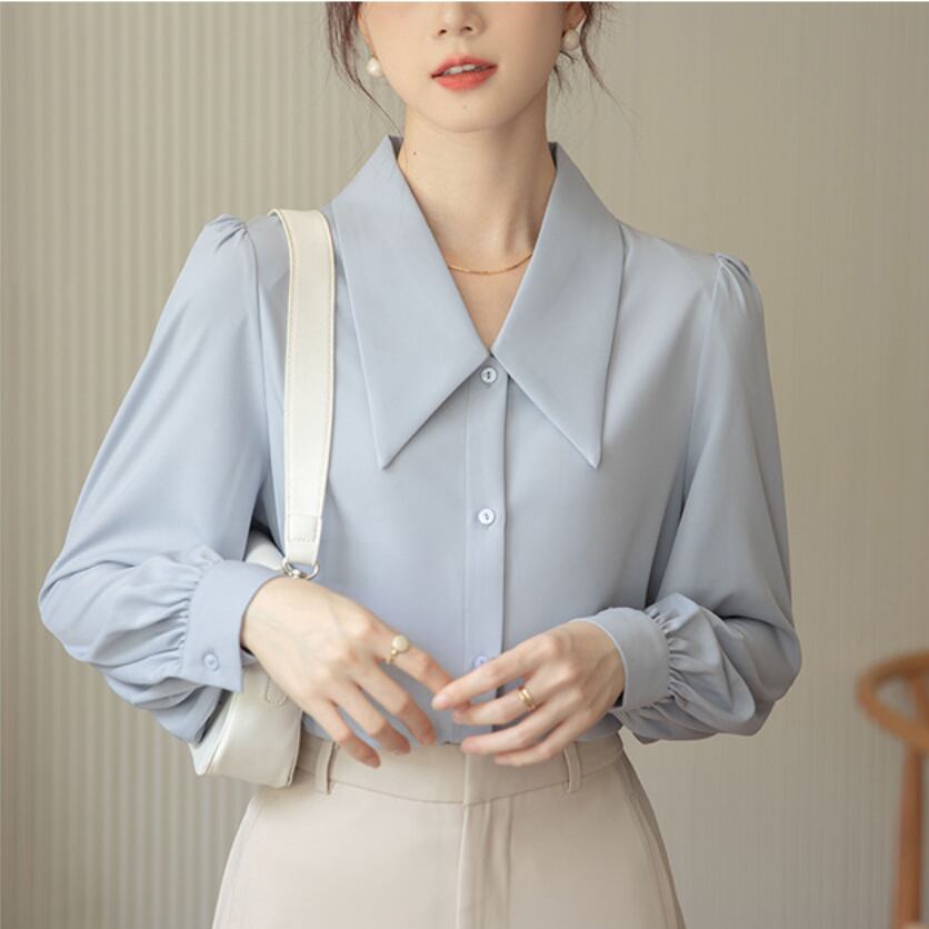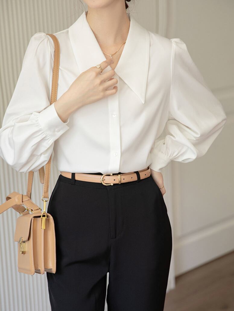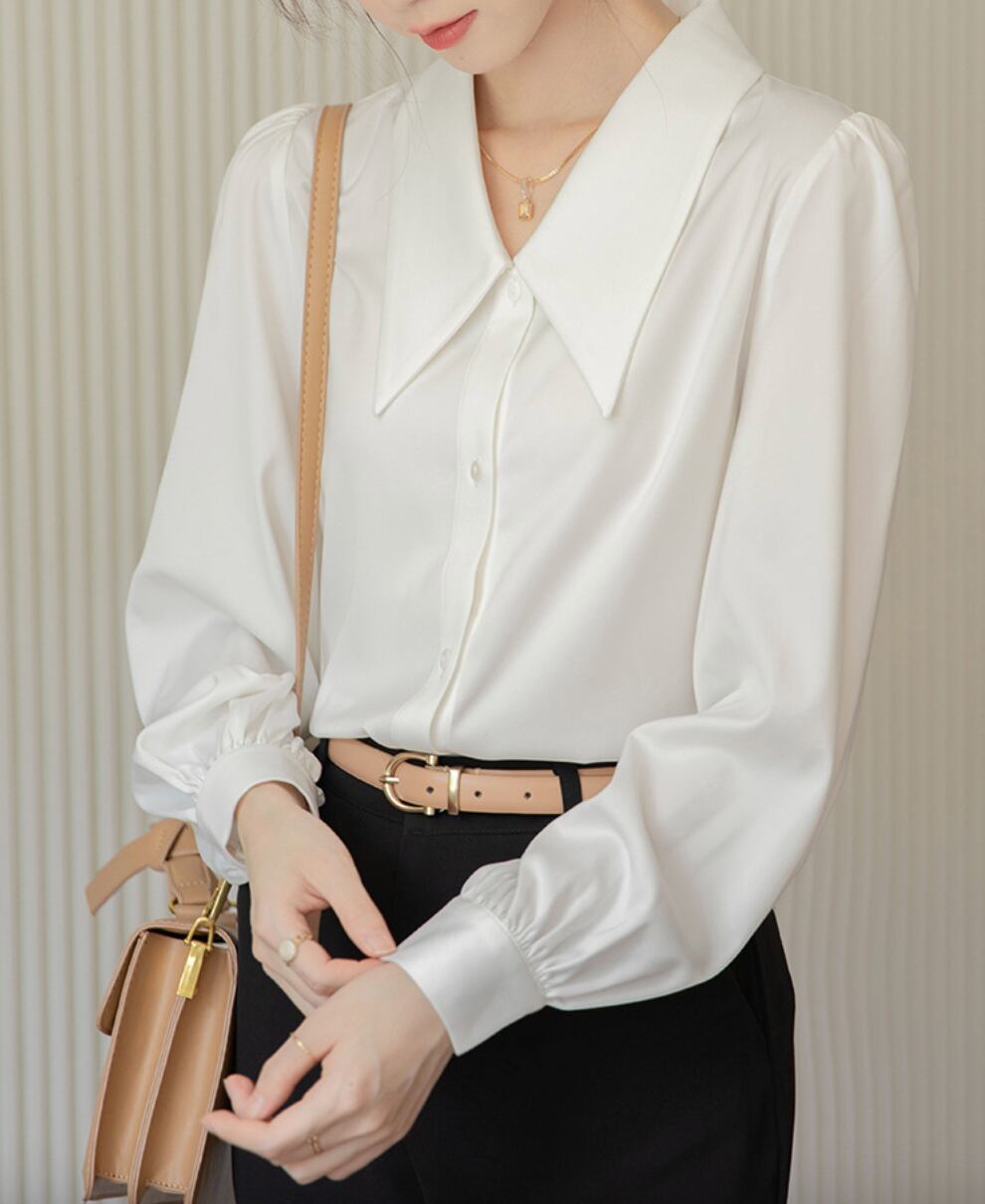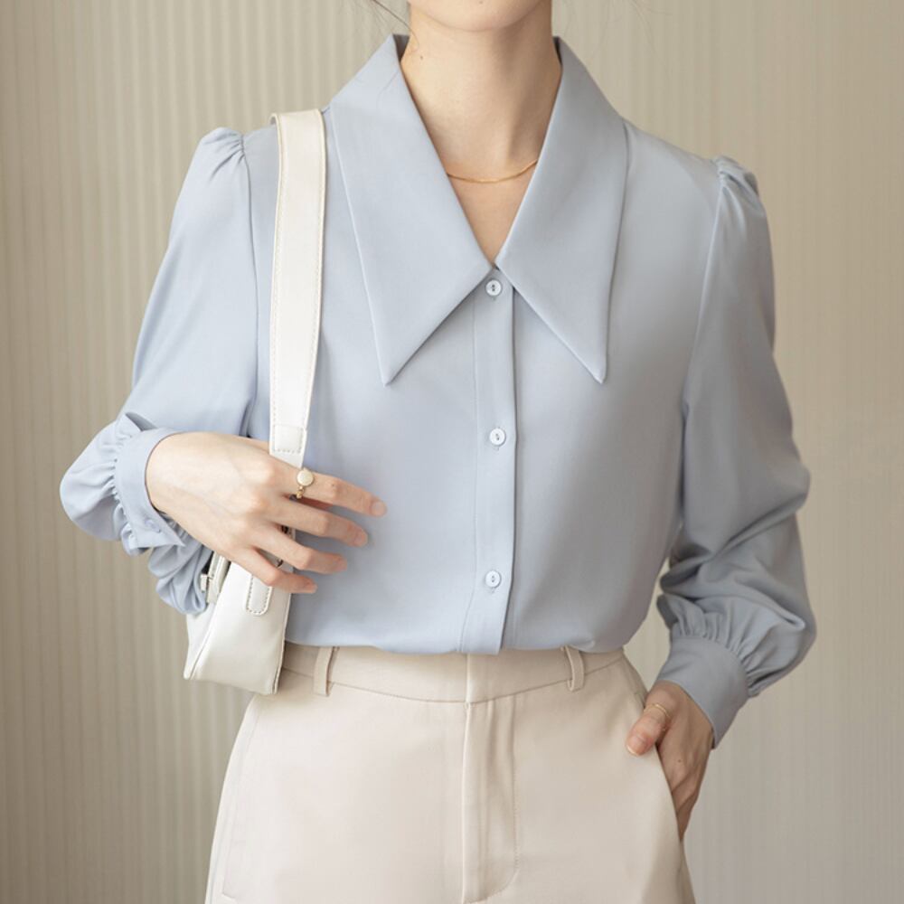 全2色|Vネック 通勤長袖ブラウス・きれいめ
